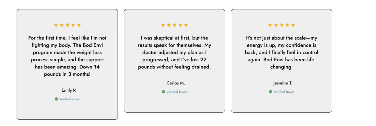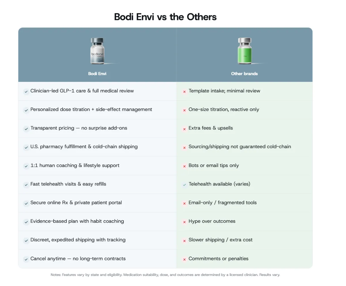 At Bodi Envi, we specialize in doctor-guided care using Semaglutide and Tirzepatide to help you feel lighter, brighter, and back in control.